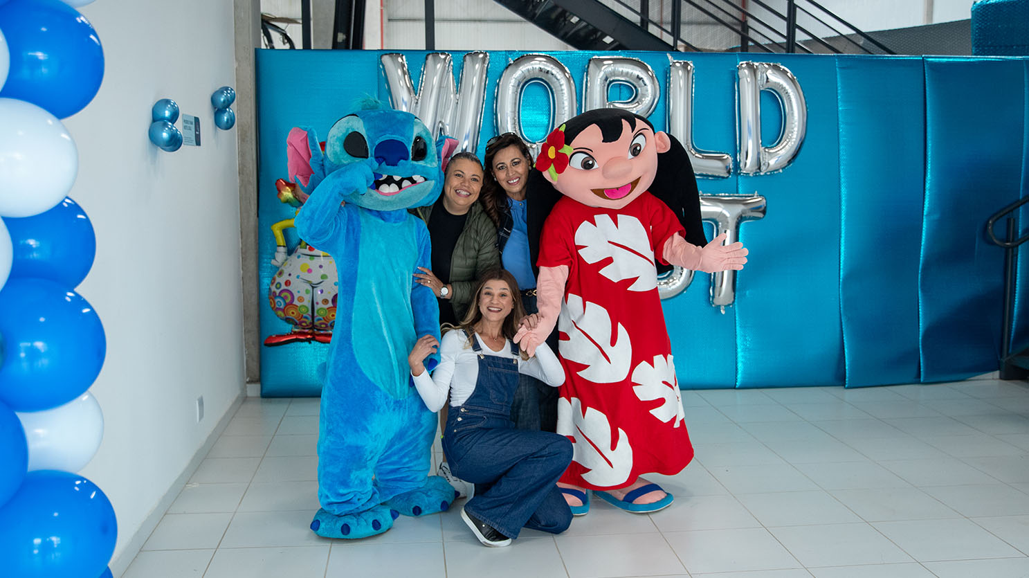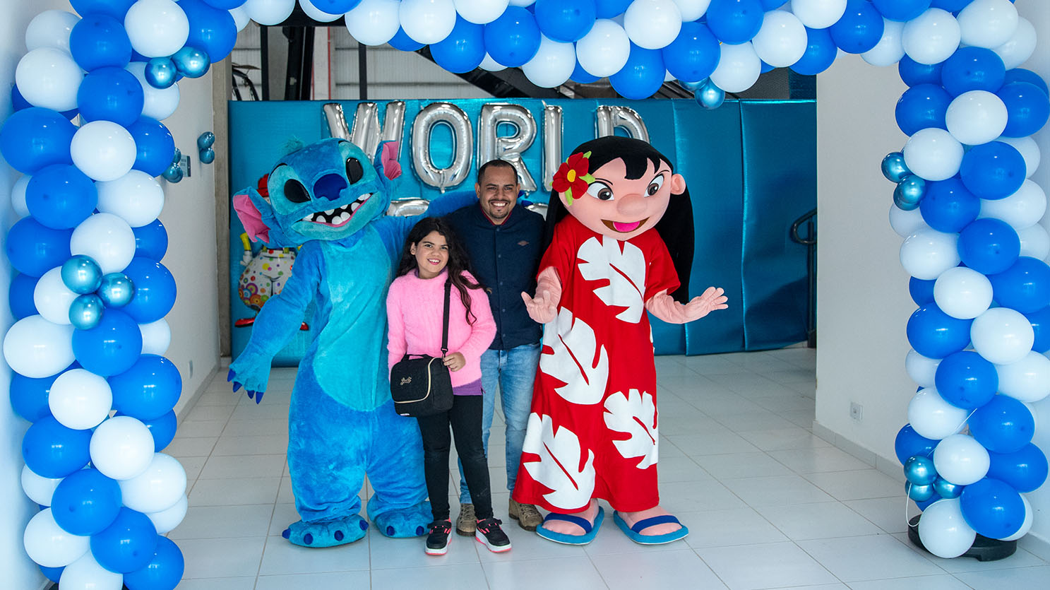 🎭 Recreadores e os personagens Nilo e Stitch, trazendo ainda mais magia e sorrisos para o dia.