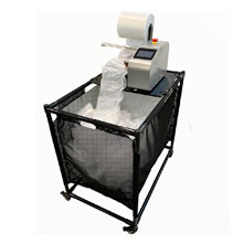 A bobina a ser processada é alinhada e dobrada no conjunto desbobinador. O filme é puxado pelos rolos tracionadores recebendo o sinal de registro da fotocélula para comandar a parada da puxada e ação do cabeçote de selagem.